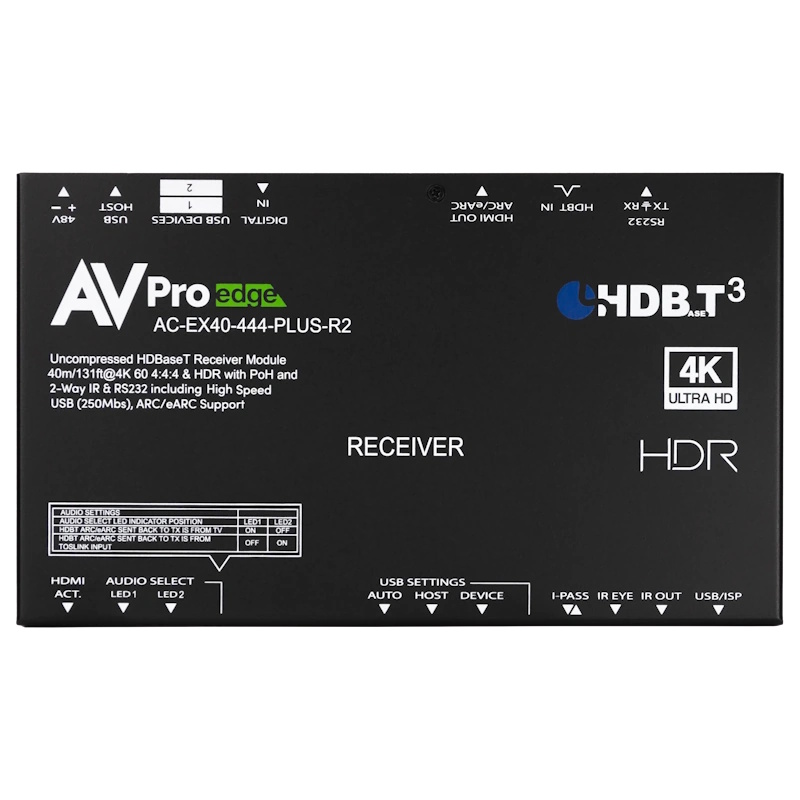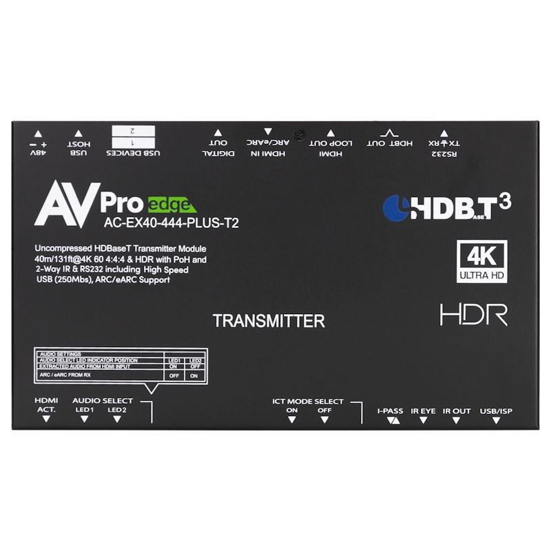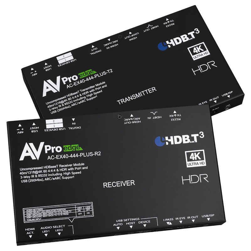 Future-forward and backwards-compatible, the AC-EX40-444-PLUS-KIT brings HDBaseT Spec 3.0 capabilities into AVPro Edge intermediate range HDMI extenders. But any telling of AVPro Edge innovation history is incomplete without mention of the legendary AC-EX40-444-KIT, which debuted Invisible Compression Technology (ICT), our transformative in-house custom-engineered, compression-transparent, proprietary algorithm, revolutionizing HDMI extension technology while simultaneously establishing the reference standard for point-to-point transmission of UHD 4K60Hz 4:4:4 signals using copper category cabling.