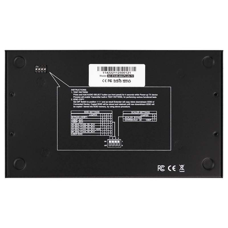 Bandwidth-Adaptable Output Configuration: The AC-EX40-444-PLUS-KIT is designed for up to 18Gbps uncompressed video transport however, if an existing wiring infrastructure proves insufficient for passing 18Gbps, our Invisible Compression Technology (ICT) can be selected for use by a toggle switch, reducing output bandwidth to 10.2Gbps for content display.