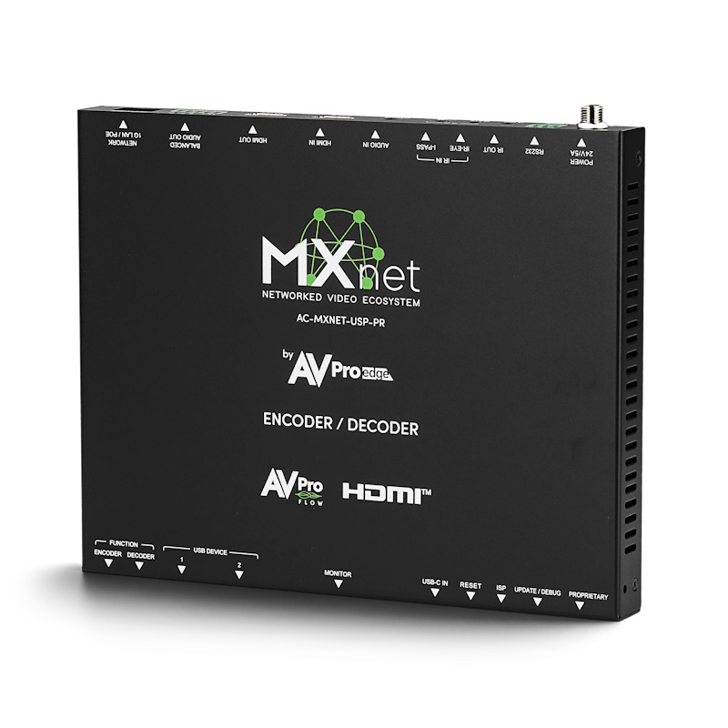 All USP models are built with AVPro Flow technology which provides interoperability between MXnet endpoints and compatible 3rd-party H.265/H.264 AV equipment. Whether integrating existing H.265/H.264 encoders, software-based decoders, or streaming platforms, AVPro Flow ensures reliable, low-latency video transport across mixed environments.