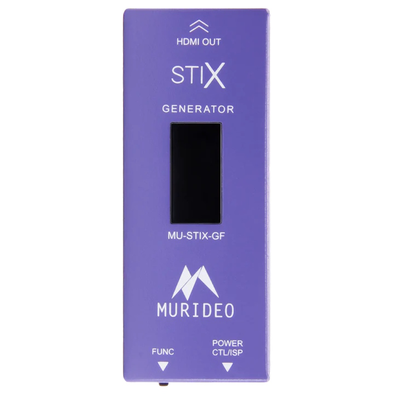 The MU-STIX-G is a revolutionary Murideo thumb drive-sized 8K HDMI pattern generator supporting HDMI 2.1 FRL signals up to 48 Gbps and legacy HDMI 2.0 TMDS signals up to 18 Gbps. The MU-STIX-G is ideal for rack room assembly testing or light-duty in-field pass/fail signal transmission verification. 13 different test patterns can be generated at resolution timings from 720p/60 fps up to 8K/30 fps, including 4K/120 fps.