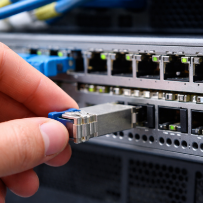 For example, AOCs connect devices up to 100m / 330ft in distance and can be installed in walls and plenum spaces. They are also immune to electromagnetic interference, are lightweight and flexible, and provide maximum data rates up to 800 Gbps.